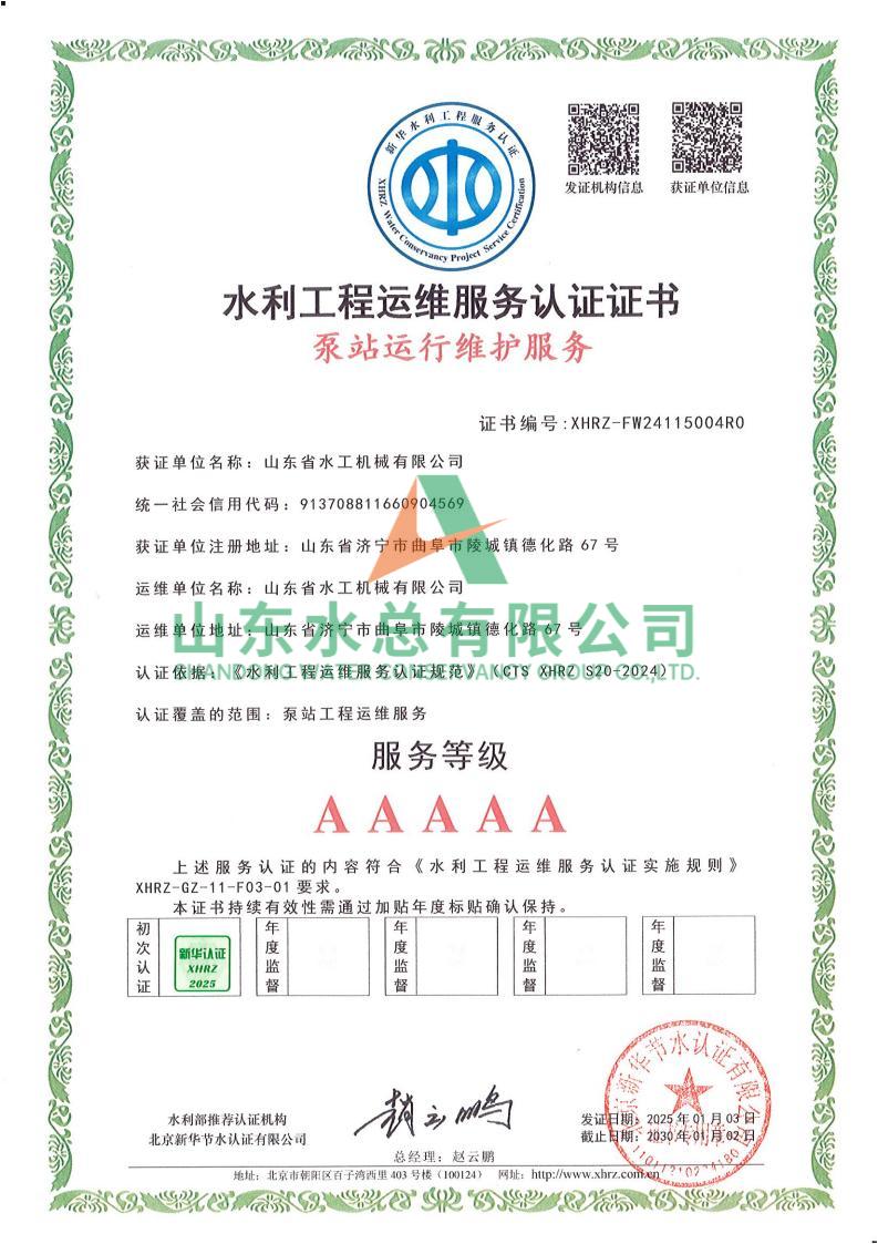 一直以来,水工机械公司高度重视水利工程运维服务的质量与专业性,在人员配备、技术应用、管理体系等多方面精心打磨。在认证过程中,历经严格审核,公司凭借扎实的运维实力、规范的服务流程以及对水利工程运维高规格的执行标准,赢得了认可。